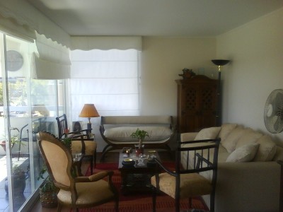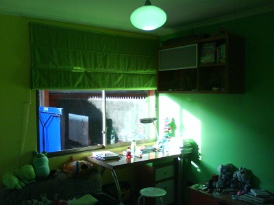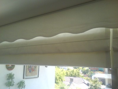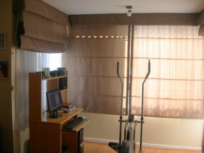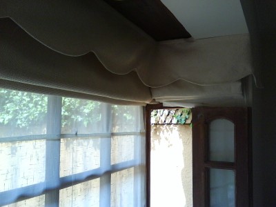 Cortina store en velo Bambú y Trevira forro blanco, con cenefa