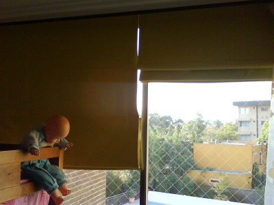Malla Protectora en pieza de niño, junto a cortina de madera