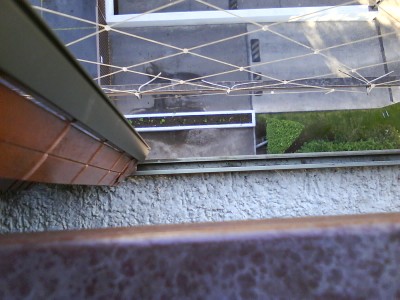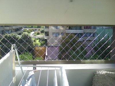 Detalle esquina Malla Protectora en Terraza de departamento